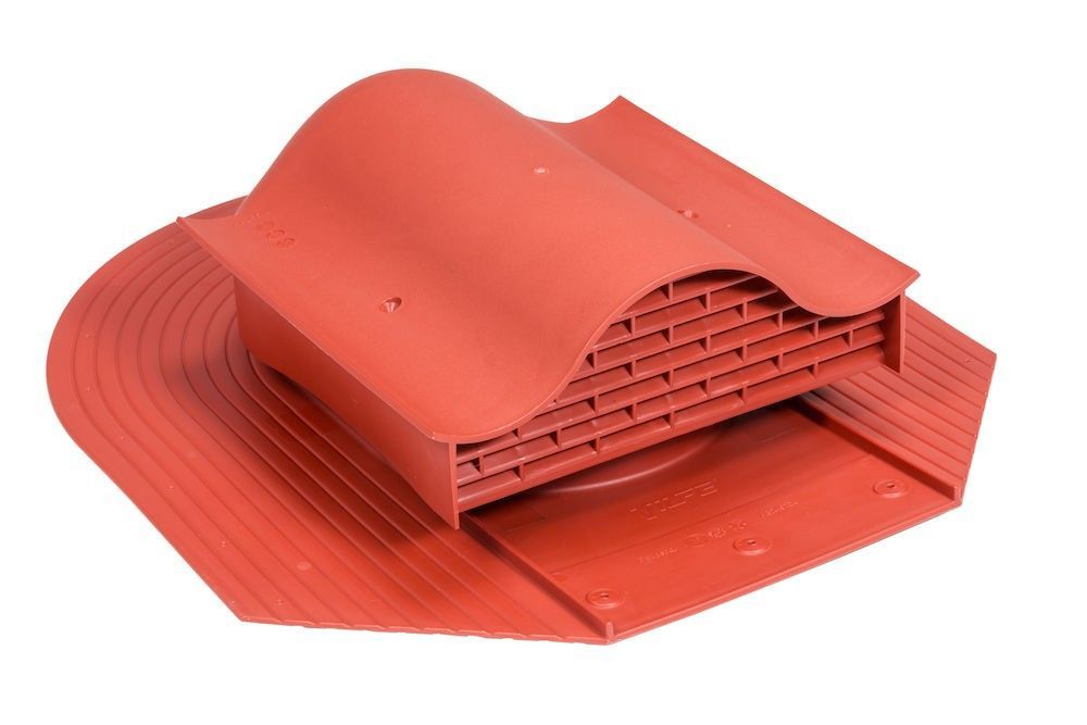 Размеры: ширина 380 мм, длина 450 мм. Ширина фланца 102 мм. Комплект: HUOPA -KTV вентиль, шаблон и набор крепежа (саморезы 6x25 мм в цвет + насадка). При монтаже отпадает необходимость заводить кровельную плитку под фронтальную часть вентиля. Плитка вырезается по направляющим нижней части проходного элемента и устанавливается к ним встык. Нижняя гладкая часть проходного элемента, установленная поверх нижнего ряда плитки, остается свободной и крепится к кровле тремя шурупами. Устанавливается при монтаже кровельного материала.