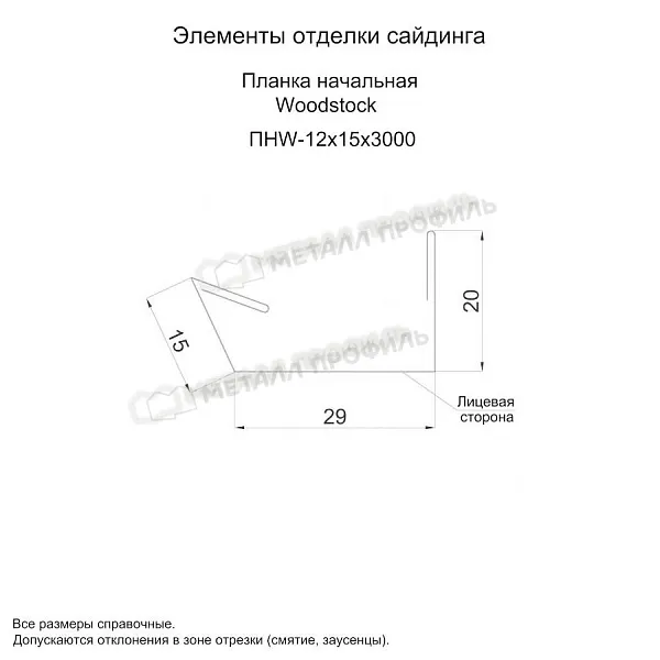 - Стальная основа противостоит деформации. Общая толщина оцинкованной стали с защитно-декоративным покрытием 0.45 мм. - Выполняет эстетические функции. - Планка начальная Woodstock 12х15х3000 (ПЭ-01-1014-0.45) не корродирует. - Богатая палитра цветовых решений. - Отличается стойкостью к воздействию солнца.