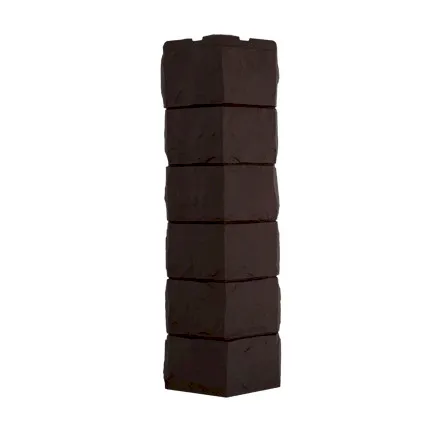 Угол наружный Фасайдинг Дачный Скол Тёмно-коричневый имитируют естественный каменный фасад, создавая эффект прочной и изысканной текстуры, характерной для скалистых областей. Это решение отличается устойчивостью к атмосферным воздействиям, обеспечивая сохранение своего первоначального внешнего вида на протяжении долгого времени.