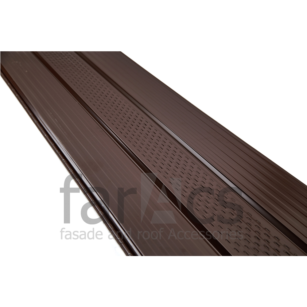 Стальной софит farAcs выгодно отличается уникальной формой с выраженным рельефом. Рельефная поверхность добавляет панелям софита дополнительную эстетику и выразительный внешний вид, а так-же увеличивает жесткость изделия, защищая от излома при монтаже.