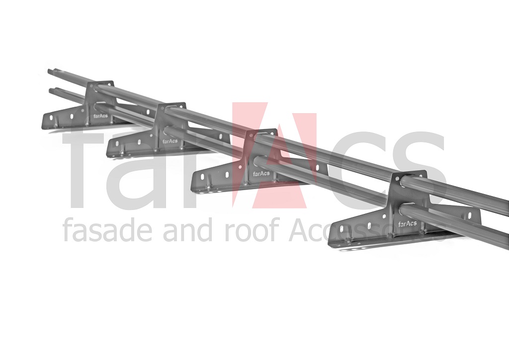 Снегозадержание является неотъемлемой частью любой кровли, выполненной из металла, а залогом долгой и успешной работы трубчатого снегозадержателя является его механическая прочность. Опоры снегозадержателя farAcs Premium выполнены из оцинкованной стали толщиной 2 мм и дополнительно снабжены ребрами жесткости, увеличивающими прочность. Трубки снегозадержателя имеют плоско-овальное сечение 45х25 мм и изготовлены из оцинкованного металла толщиной 1 мм, для удобства стыковки имеют обжим с одного торца. Опоры и трубки покрыты атмосферостойкой порошковой краской.