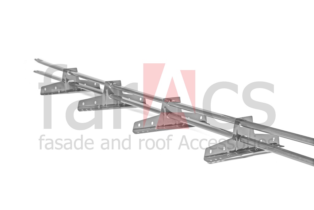 Снегозадержание является неотъемлемой частью любой кровли, выполненной из металла, а залогом долгой и успешной работы трубчатого снегозадержателя является его механическая прочность. Опоры снегозадержателя farAcs выполнены из оцинкованной стали толщиной 1,2 мм и дополнительно снабжены ребрами жесткости, увеличивающими прочность. Трубки снегозадержателя имеют плоско-овальное сечение 40х20 мм и изготовлены из оцинкованного металла толщиной 1 мм, для удобства стыковки имеют обжим с одного торца. Опоры и трубки покрыты атмосферостойкой порошковой краской.