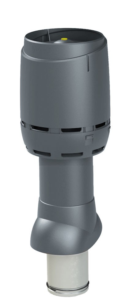 Вентиляционный выход укомплектован новым улучшенным колпаком Flow, который обеспечивает на до 40% меньше потери давления в системе, лучшую защиту от атмосферных осадков, строго вертикальный поток выходящего воздуха (при использовании с кухонной вытяжкой уменьшается вероятность попадания капель масла на кровельный материал), современный дизайн.